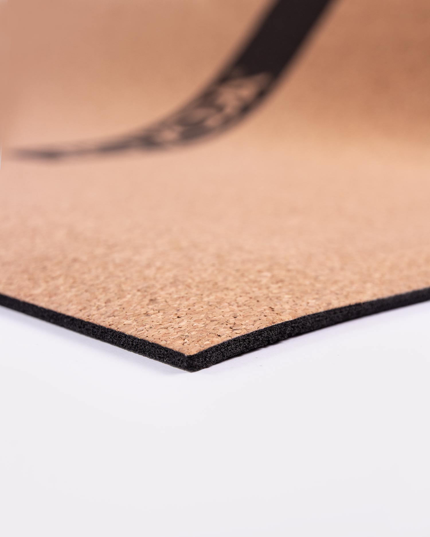 Die Unterseite aus 100% Naturkautschuk bietet einen sicheren Stand, ist dämpfend, griffig und sorgt für flach aufliegende Mattenkanten, die sich während der Yogapraxis nicht wieder hochrollen.