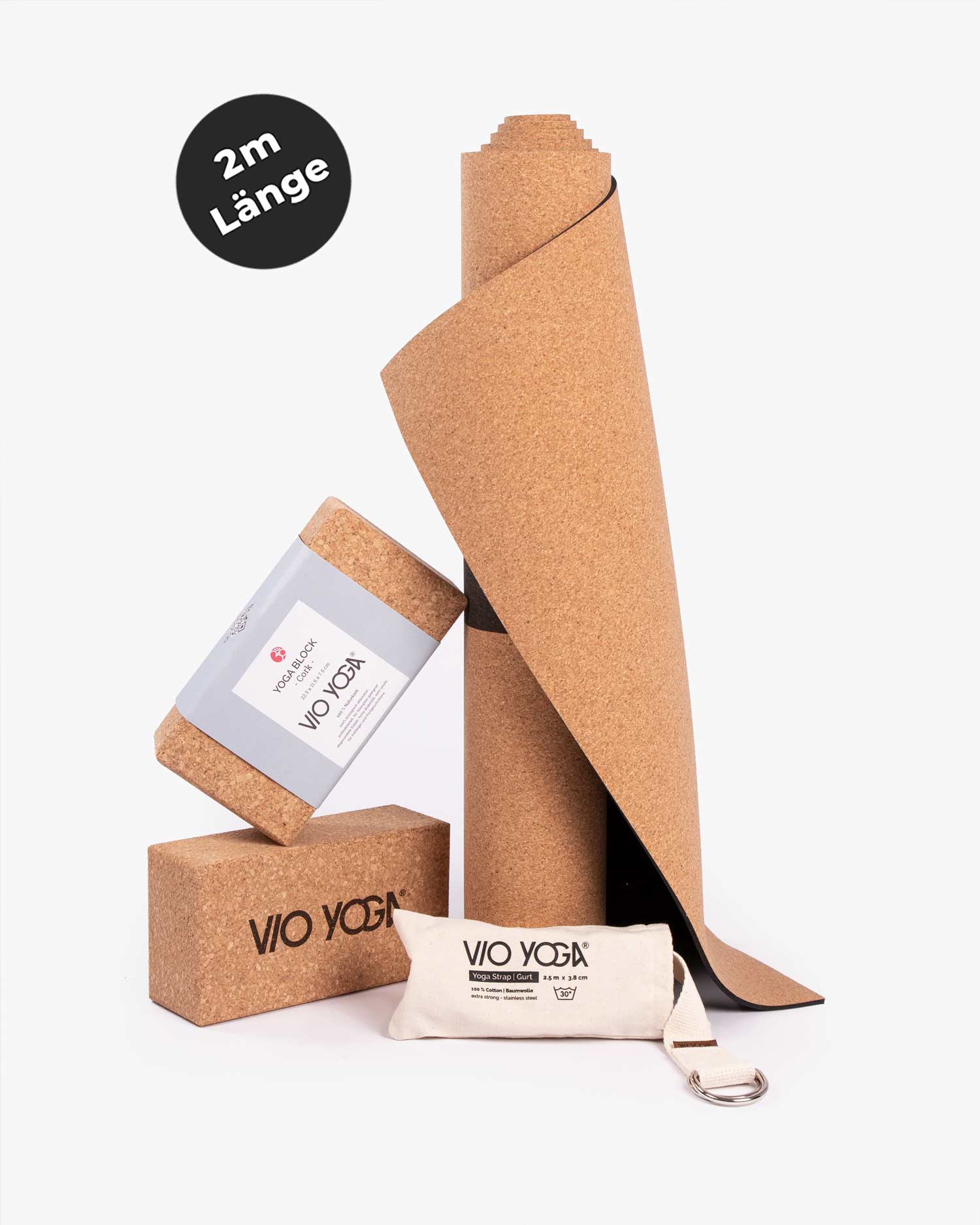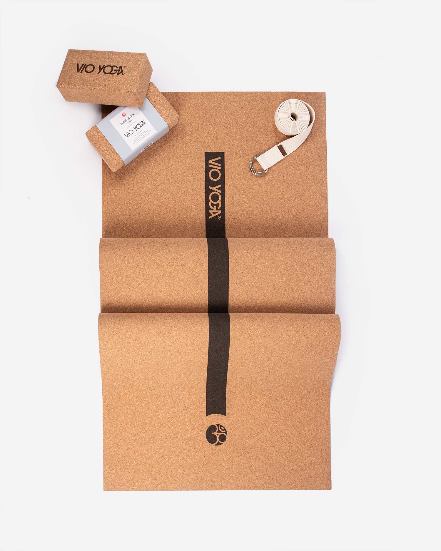 Yogamatte: Kork / TPE | Blöcke: 100% Kork | Gurt: 100% Baumwolle