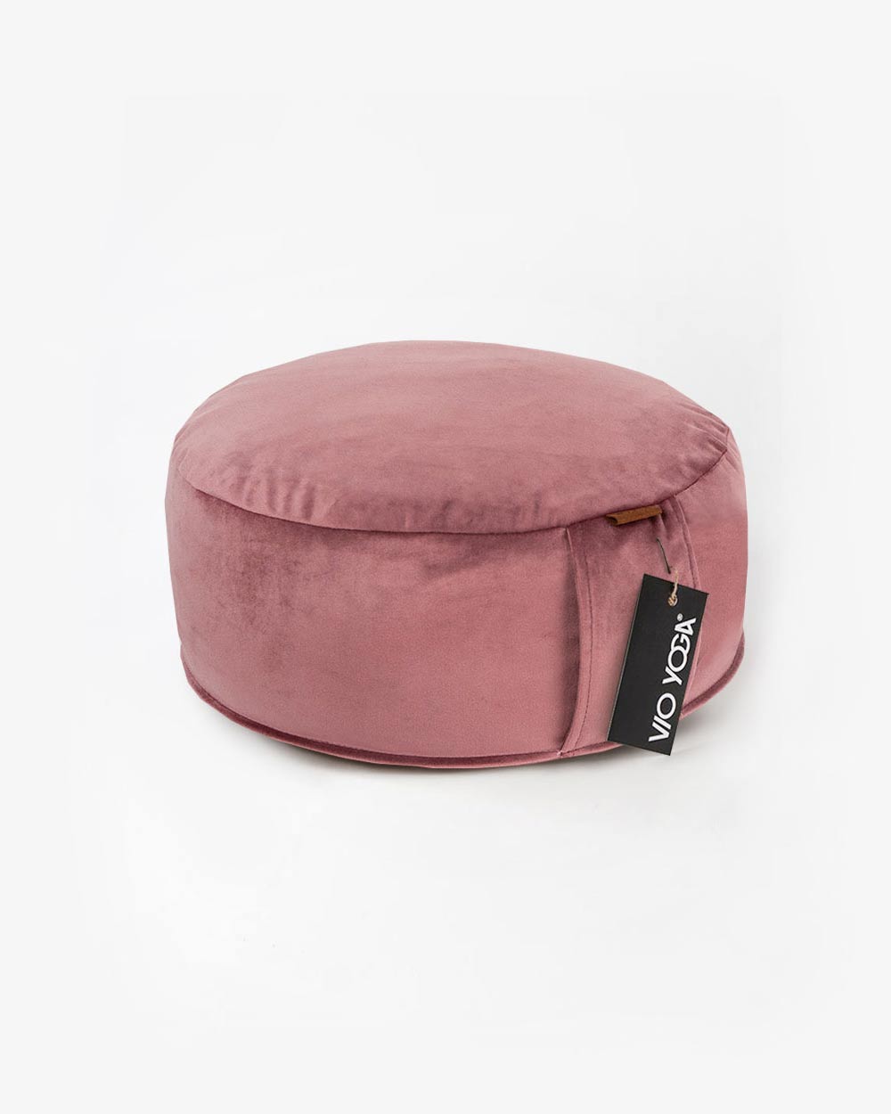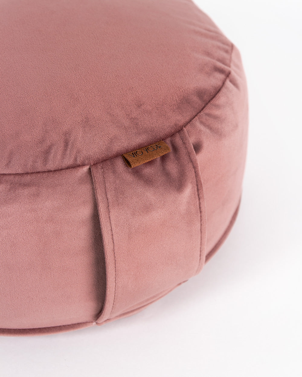 Meditationskissen / Yogakissen von Vio Yoga aus Samt Rose mit Bio Buchweizenschalen - Vorderansicht.