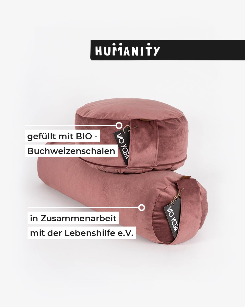Samt Yoga Bolster Rose mit Bio-Buchweizenschalenfüllung, Bezug waschbar, Made in Germany